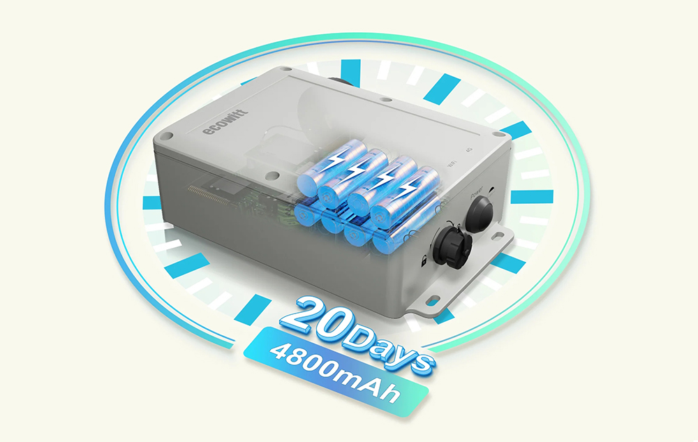 Power Supply: A 7W solar panel ensures sufficient power in areas with limited sunlight, and an 8pcs Ni-MH battery pack supports the gateway for 30 days without charging